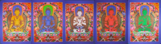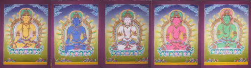 Five Dhyani Buddhas Thangka Set | The 5 Wisdom Tathagatas | Hand-Painted Art