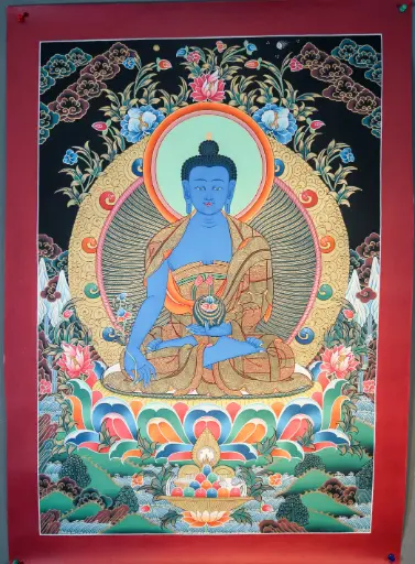 Medicine Buddha Thangka – Natural Landscape Style