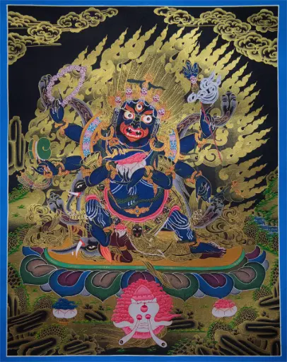 Bernakchen Mahakala Thangka – Deep Blue & Gold Style