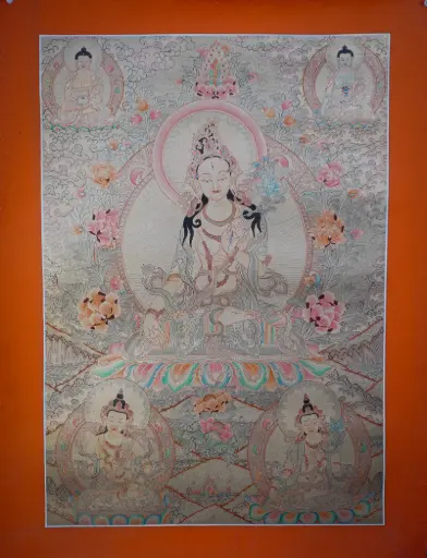 White Tara Thangka – Five Dhyani – Radiant Healing Mandala